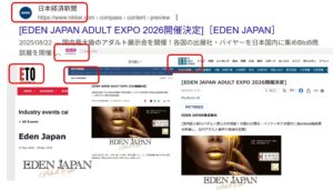 現在、EDEN JAPAN ADULT EXPOは日本国内だけではなく、海外からも多くのメディアから報道され、皆様からご支援を頂いております。 国内:PR TIMES 、日本経済新聞、産経新聞、朝日新聞、niftyニュース、楽天ニュース…など 海外:ChinaSexQ性商網(中国)、ETO(英国)…など